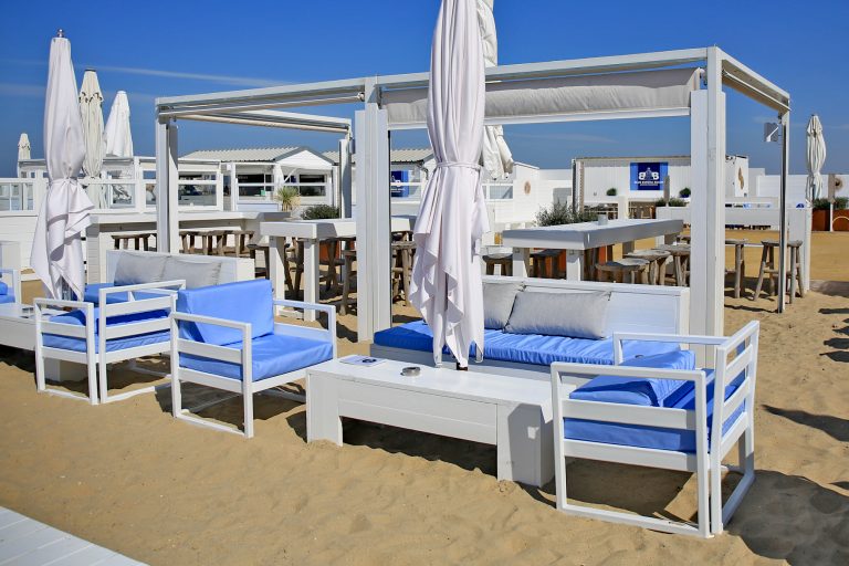 Geniet van uw eigen stukje paradijs. Bij de cabine hebt u 2 comfortabele ligstoelen, 2 strandstoelen, 1 parasol en 1 zeil. Voor de prijs van € 2.100 op seizoenbasis.